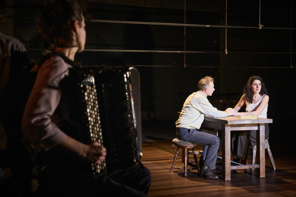 © Christophe Raynaud de Lage : Marion Chiron, Karyll Elgrichi et Damien Zanoly dans Martin Eden d’après Jack London, mise en scène de Mélodie-Amy Wallet au TNP-Villeurbanne