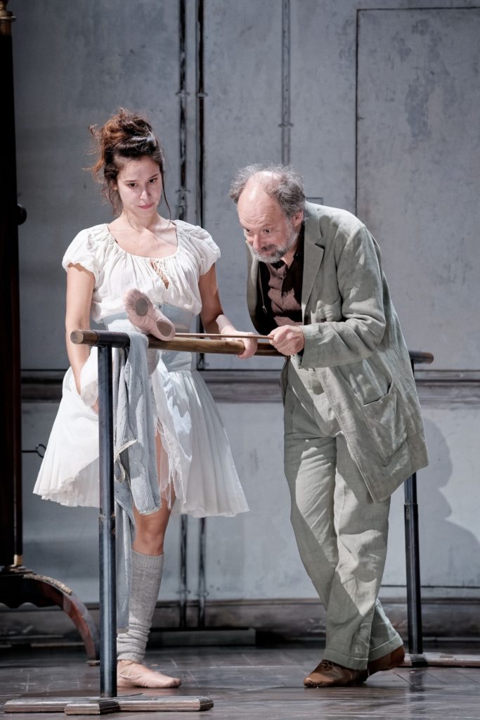 Malgré les tenues légères et claires des ballerines, c’est une vision très sombre. Clément Hervieu-Léger et Éric Ruf sont allés chercher du côté de chez Degas. On pense notamment au tableau, La Classe de danse. Or, dans les toiles de Degas, on découvre aussi l’envers du décor avec la terrible réalité des petites danseuses de l’Opéra de Paris : leur fatigue, leur souffrance. Et, c’est de cela que nous parle Goldoni. C’est très bien exprimé, joué avec finesse et subtilité par les acteurs et les actrices de la Comédie-Française. Et, les notes que joue Philippe Cavagnat sont souvent mélancoliques. Pourtant, on aurait souhaité encore plus de réalisme, de noirceur.
